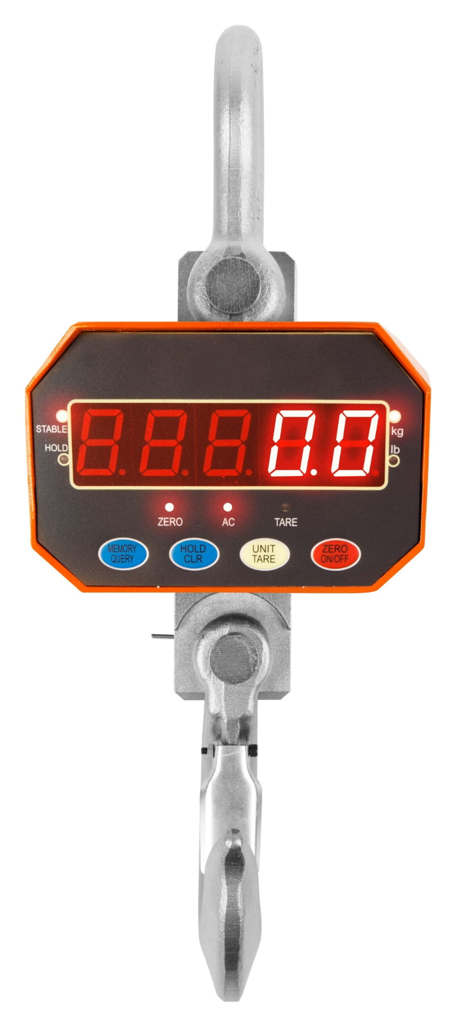 Solidna obudowa z bezpiecznymi szeklami i hakiem, gwarantującymi pewność i bezpieczeństwo obsługi wagi.